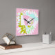 Reloj Cuadrado Nido de pájaro - Blanco rosa flamenco
