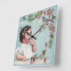 Reloj Cuadrado Niña pequeña y pájaro azul