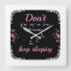 Diseño decorativo negro, rosa y blanco con el dicho: "No te rindas en tus sueños, sigue durmiendo"