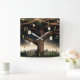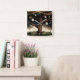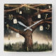 Reloj Cuadrado Noche Rústica Árbol con Luces y Frascos de Mason