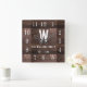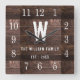 Reloj Cuadrado Nombre de familia monogramada rustica de madera pe