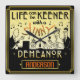 El texto inspirador, original dice, la "vida puede ser más afilada con un comportamiento soleado." Es hizo todo en sombras de amarillo-naranja soleado, de oro en un fondo negro.
