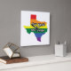 Esta colorida obra de arte muestra el estado de Texas creado a partir de un arco iris.