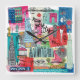Global Travel I por Farida Zaman. La imagen muestra la ciudad de Nueva York con varios monumentos famosos y elementos emblemáticos de la ciudad. | SID23322