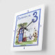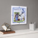 Un dibujo de la puerta de la casa y bicicleta estacionada, indica el número 3 y bienvenido en francés o Bienvenue, a nuestra casa.