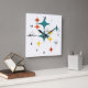 Este diseño moderno de mediados del siglo XX está inspirado en los diamantes atómicos de la era de Eames y en los estallidos de estrellas con turquesa, naranja y amarillo. El color de fondo del blanco que se muestra puede ser personalizado por usted a cualquier color que prefiera. Siéntase libre de personalizar según sus necesidades.