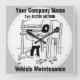 Promocione su negocio de mantenimiento de vehículos de garaje. Hazlo personal añadiendo el nombre de tu empresa y el número de teléfono. Incluye el fondo de la cara del reloj débil.