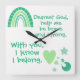 Monogramado para que insertes tu propia oración si así lo eliges, reloj cuadrado de pared. Este adorable tema del boho con un arco iris verde y una galaxia, y un texto verde sobre un fondo blanco, dice, Dios mío, ayúdame a ser valiente y fuerte. Sé que pertenezco a ti.