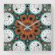 Reloj Cuadrado Orange and Teal Green fractal Flower