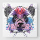 Este diseño presenta una cara de panda en un marco triangular con gota de tinta de acuarela.