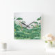 Un ilustracion impresionante de un paisaje exuberante y verde de estilo bohemio, con un fondo blanco inmaculado. La escena incluye colinas onduladas, flores silvestres coloridas y árboles caprichosos con ramas torcidas. La composición general transmite una sensación de tranquilidad y de encanto, invitando al espectador a perderse en la belleza de la naturaleza. Colores monocromáticos