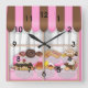 Reloj Cuadrado Panadería rosada linda del dulce de la magdalena
