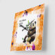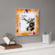 Reloj Cuadrado Panda con marco de flor Naranja
