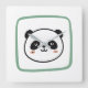 A cute painted-style panda with soft blushing cheeks, framed by a cool green square in a playful minimalist design.