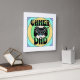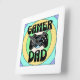 Papá de juegos retro con auriculares y control para el padre jugador.