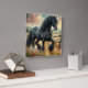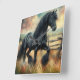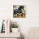 Reloj Cuadrado Pastel de Caballo Negro Fresian Valla Rústica