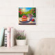 Reloj Cuadrado Pastel de fresa y deplante de café