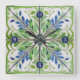 Reloj Cuadrado Pat. de mosaico floral pintado #14 Blue Green ID10