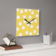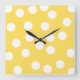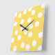 Reloj Cuadrado Patrón de Big Dot amarillo y blanco.