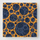 Un patrón vibrante muestra una serie de círculos interconectados de azul oscuro sobre un fondo naranja brillante, creando un contraste sorprendente. El acuerdo de superposición da una sensación de profundidad y movimiento. diseño de ilustracion de agujeros trippy de naranja abstracto y lava azul. Etiquetas: abstractas, puntitos, geométricas, locas, naranjas, azules, alucinógenas, agujeros, psicodélicas, lava, trippy, tripofobia