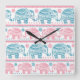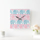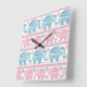 Reloj Cuadrado Patrón De Elefante Étnico Rosa Y Verde azulado