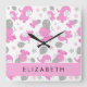 Reloj Cuadrado Patrón De Elefantes Rosa, Estrellas, Tu Nombre