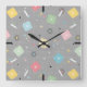 Este reloj de pared tiene un patrón de explosiones estelares atómicas retro dispersas con cuadrados y estrellas a mediados del siglo moderno estilo de los años 50. La textura lineal recorre el diseño. Ideal para alguien que ama los temas de los 50 o el estilo moderno de mediados de siglo. Sería perfecto para una decoración de temática retro. Puede hacer que el patrón sea más grande o más pequeño en el reloj.