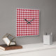 Un reloj de pared de diseño con un diseño clásico de gingham rojo y blanco a cuadros.