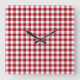 Reloj Cuadrado Patrón De Gingham De Cranberry Rojo Y Blanco Verif
