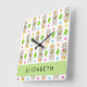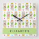 Reloj Cuadrado Patrón De Llamas, Alpacas, Cactus, Tu Nombre