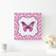 Reloj Cuadrado Patrón de mariposa Bonito púrpura rosa