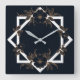 Reloj Cuadrado Patrón elegante dorado floral negro