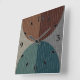 Patrón geométrico abstracto. Formas texturadas azules y marrones sobre un fondo gris.
