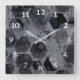 Reloj Cuadrado Patrón geométrico abstracto, negro y gris.