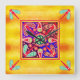 Reloj Cuadrado Patrones de arte dorado y morado del Huichol mexic