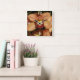 Reloj Cuadrado Peach Orquídeas con gotas de lluvia