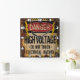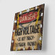 Este signo de advertencia de angustia presenta de forma destacada "PELIGRO:" dentro de un cartel rojo, flanqueado por unos tornillos relámpagos amarillos llamativos. A continuación, en negrita se advierte "ALTA TENSIÓN", con instrucciones adicionales: " → NO TOCAR todo lo que se pueda producir" y "RIESGO ELÉCTRICO". La textura acristalada y oxidada y las franjas peligrosas crean una auténtica alerta de seguridad industrial vintage.