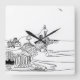 Hombre en una colina contemplando un pájaro que vuela en el cielo sobre la pluma Cute y el ilustracion de tinta