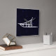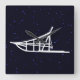 Una silueta blanca de un perro colgado en un fondo de estrellas.