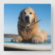 Reloj Cuadrado Perro del golden retriever que pone en un tablero
