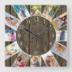 Reloj Cuadrado Personalizado 12 Collage de fotos Rústico Madera O