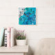 Reloj Cuadrado Personalizado Acuarela Azul y Blanco Personalizado