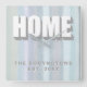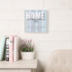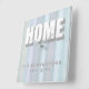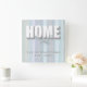 Diseño abstracto de rayas pasteles, efecto acuarela único, matices neutros y sutiles reloj de arte mural. Personalizado personalizado con el apellido y el año establecido, por ejemplo. Gran tipografía en negrita de cita HOME con aspecto de sombra de alivio. Perfecto para su fresco acento de decoración en casa, fácil de igualar en cualquier ambiente. O una gran idea creativa reflexiva para el calentamiento de la casa, nuevos propietarios de casas o recién casados. Moderna casa de campo de estilo estético moderno e incluso de diseño náutico marino con tonos polvorientos de azul claro, verde azulado, turquesa, aqua, violeta, lavanda, gris, blanco.