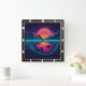Reloj Cuadrado Pesca con atardecer de cuero con herramientas