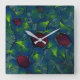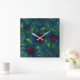 Reloj Cuadrado Pétalos virtuales con puntas azules, hojas y hexág