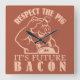 "Respect the pig - it's future BACON". Using the "customize it" function, you can change (edit) the background color of this item and add your own text if you wish. See my store for more items with this design.
