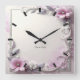 Reloj Cuadrado Pink Floral Frame Wall Clock