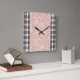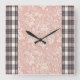Reloj Cuadrado Pink & grey plaid stripes AI art