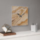 Reloj Cuadrado Plantilla de piedra de fondo de mármol Tan natural