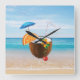 Reloj Cuadrado Playa Tropical, Blue Sky, Ocean Sand,Coctel de coc